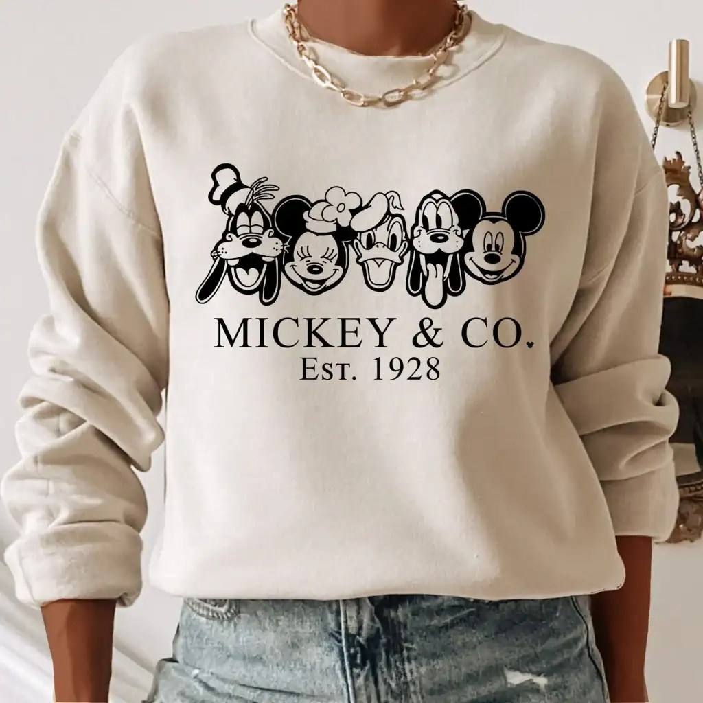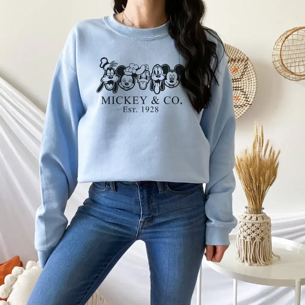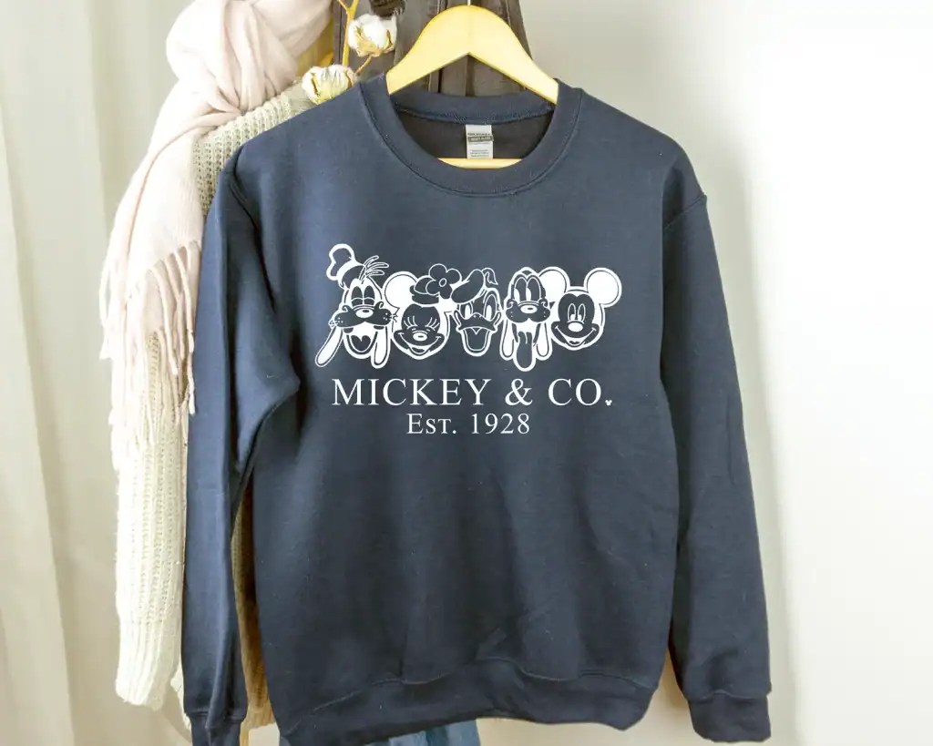 The first day of winter is not officially until December 21st. However, the weather is still getting colder and it’s time to start planning how to stay warm in style. This Mickey & Co Sweatshirt from EstherHaile on Etsy will keep you warm while letting you travel with your favorite friends.