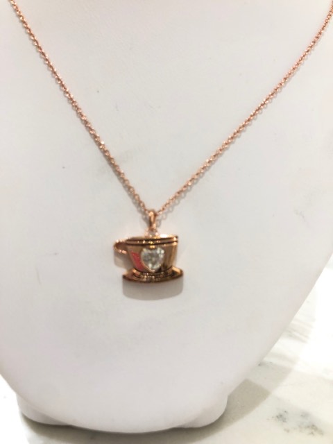 As an Alice in Wonderland fan I’m absolutely in love with the rose gold Tea Cup Necklace. This beautiful piece has a large heart shaped gem that adorns the front, which gives is extra shimmer. This necklace retails for $75.00.