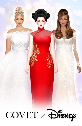 In collaboration with Disney, Covet Fashion is launching a series of Disney’s Fairy Tale Weddings-inspired Style Challenges, featuring digital backdrops of Disney Wedding venues from Disney destinations around the globe as well as exclusive dresses, accessories and hairstyles inspired by classic Disney characters including Ariel, Aurora, Belle, Cinderella, Mulan, and Tiana (see below for inspiration).