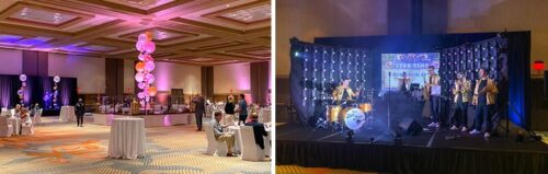 Among the protocols implemented for each event are: Temperature checks at the entrance; plexiglass walls for all food service areas; all cast members wearing PPE; socially distanced event space; seating available to accommodate each party at their own table; touchless menus and clearly marked social distancing signage.