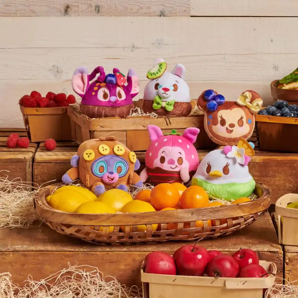First up is the sweet Fruity Finds scented collection! Each of these micro Munchlings is 4 inches tall and come in blind boxes! You might find Açai Bowl Angel, Fruit & Granola Parfait White Rabbit, Blueberry Pancakes Minnie, Banana Nut Bread King Louie, Chocolate Dipped Strawberry Piglet, Fresh Coconut Water Daisy, or the Unknown Mystery Character! It is a blind box, after all!