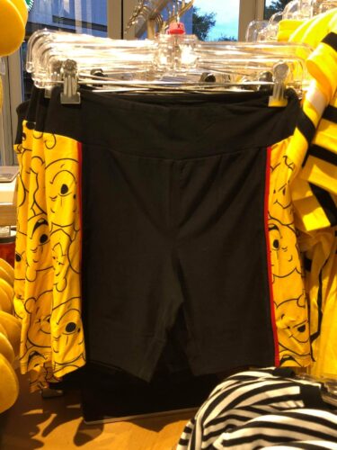 You can pair either shirt with the Winnie the Pooh biker shorts! These sleek shorts are all black, with golden yellow racing stripes down each side. Of course, images of Pooh are woven throughout the golden stripes.