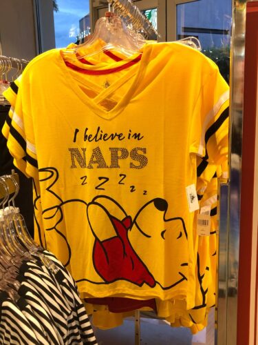 The second shirt in the collection really speaks to me! It showcases Pooh Bear taking a tap, while the Zs drift away from him. The text above our favorite bear says “I believe in Naps”, and honestly so do I, Winnie, so do I.
