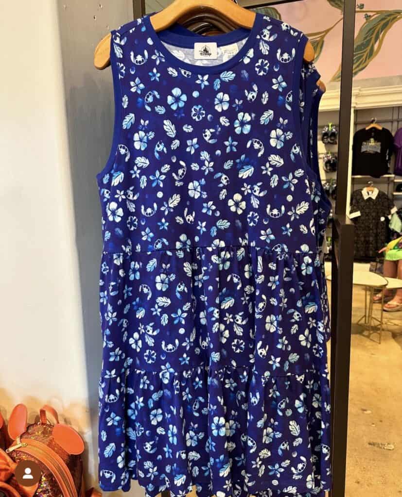 Te presentamos el nuevo vestido de Stitch disponible en Disney Springs. De tela tipo camiseta, sin mangas, con un corte tipo imperio que favorece a muchos tipos de cuerpo, este vestido de tono azul obscuro muestra a Stitch y flores tropicales. Todavia no se encuentra disponible en línea pero si en parques.