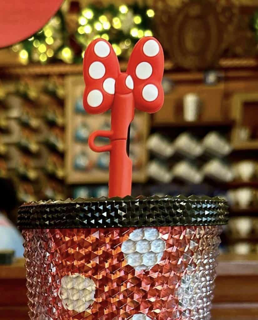 If you haven’t used a straw cover on a tumbler yet, you don’t know what you’re missing! The fact that this one comes with a Minnie Bow straw cover provides enough reason for me to purchase this! I love my straw covers. Working with the public, I like to keep my straw protected from wandering hands and fingers! How fabulous to have a Minnie Bow straw cover!