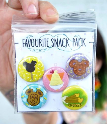 Now, you can take your favorite Disney snacks with you wherever you go. The “Favourite Snack Pack 1 Inch Button Pin Pack” is perfect for Disney snack fans everywhere.