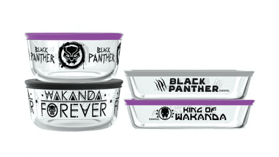 Like the Spider-Man items, you can get the Black Panther storage containers in either a 4 piece or 8 piece set. The 4 piece set comes with 2 four cup containers and matching lids, while the 8 piece set includes those items plus two additional three cup containers. Each design is a little bit different. From graffiti to a more traditional African look, all of your bases are covered.