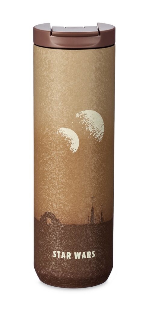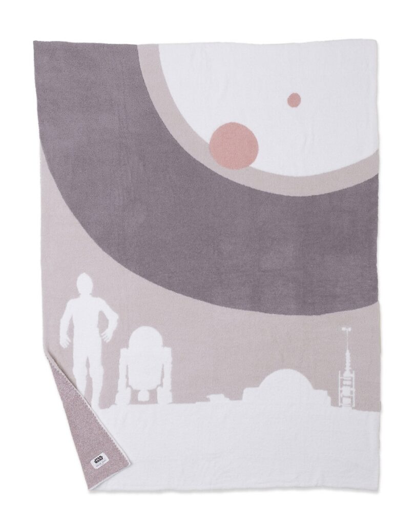 Additional items in the collection include a Starbucks water bottle and a Barefoot Dreams throw blanket. Our planet might only have one sun, but you still need to stay hydrated! Grab the stainless-steel travel tumbler with flip-up sipper lid. The traditional soft plush fabric of Barefoot Dreams showcases C-3PO and R2-D2 gazing out at the iconic binary sunset.