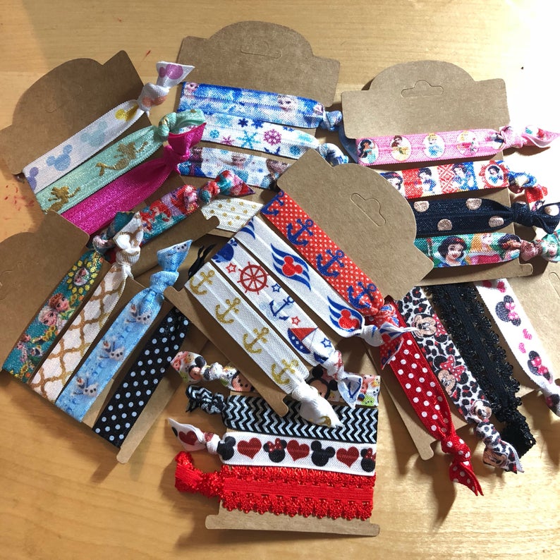 Each one of these Disney-inspired sets comes with four coordinating hair ties. Keep that hair out of your face as you gaze down at the ocean waves. There are many different styles available, but of course, I love the Disney Cruise ones the best! You can find them on Etsy from KarinaLovesBling for $2.95.