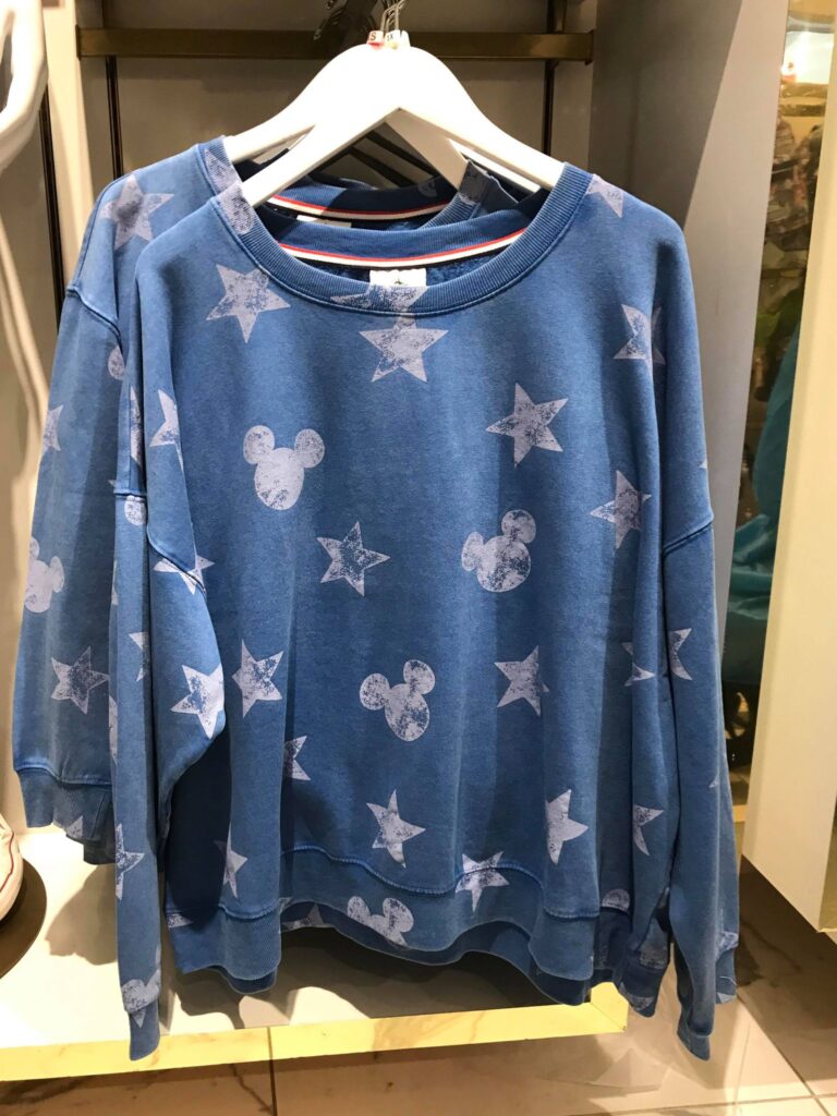 First up, I want to talk about this Pullover Sweatshirt and the matching Sweat Shorts. Both of these adorable vintage blue pieces feature distressed fabric and a distressed allover pattern of stars and Mickey icons! The pieces look adorable together (but can of course be worn separately), and the shorts even have pockets!