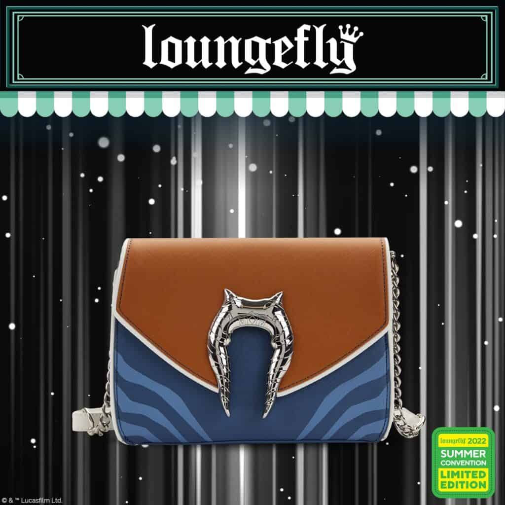 Next is this Star Wars Ahsoka Crossbody Bag ($75) that features a blue striped body, a brown flap, white details, and a clasp that is a silver version of Ahsoka’s lekku! I love that this design pays homage to the Character in a more subtle way!