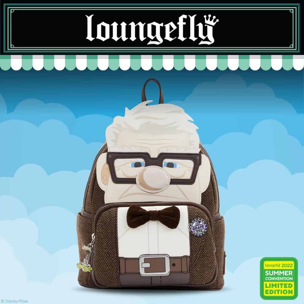There is also a fabulous Pixar Carl Cosplay Mini Backpack ($90) featuring everyone’s favorite old man! Honestly, this bag is a MOOD. It features Carl’s grumpy face, his iconic tweed suit, his corduroy bowtie, a grape soda pin, and even a tennis ball cane on the zipper pull!