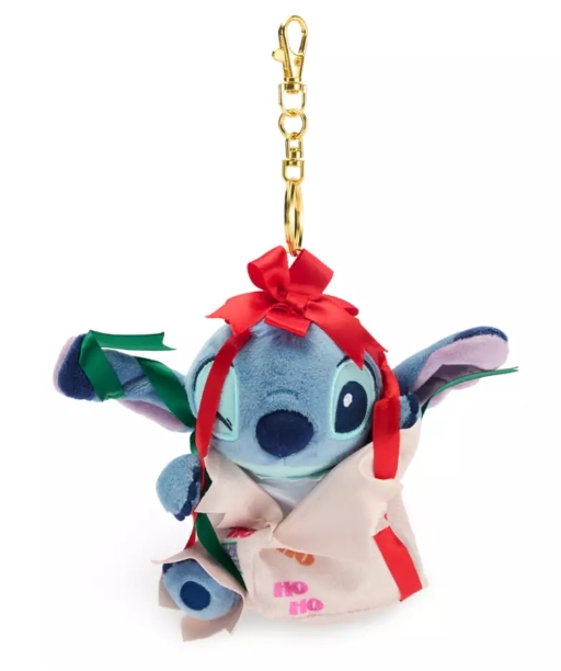 Chip and Dale make an adorable pair of doughnuts! They don’t look disappointed at all to be trapped inside a frosting and sprinkle covered treat! Dale licks his lips with a star perched on his head while Chip is channeling Old Saint Nick! Stitch bursts out of a gift bag, topped with a bow. These keychains would be great gift toppers or stocking stuffers!