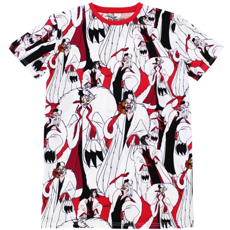 The first item in the collection is the Cruella All Over Print (AOP) T-Shirt. Cruella poses all over this shirt. It’s hard to tell what is the shirt’s background and what is Cruella’s outfit. I love the picture of Cruella talking on the phone. It reminds me of the look I have when a telemarketer calls and I pick up the phone by mistake. The Cruella with the slicked down hair reminds me of how I look when people try to talk to me when I first get up. No matter how you are feeling, there is a Cruella look that matches your mood!