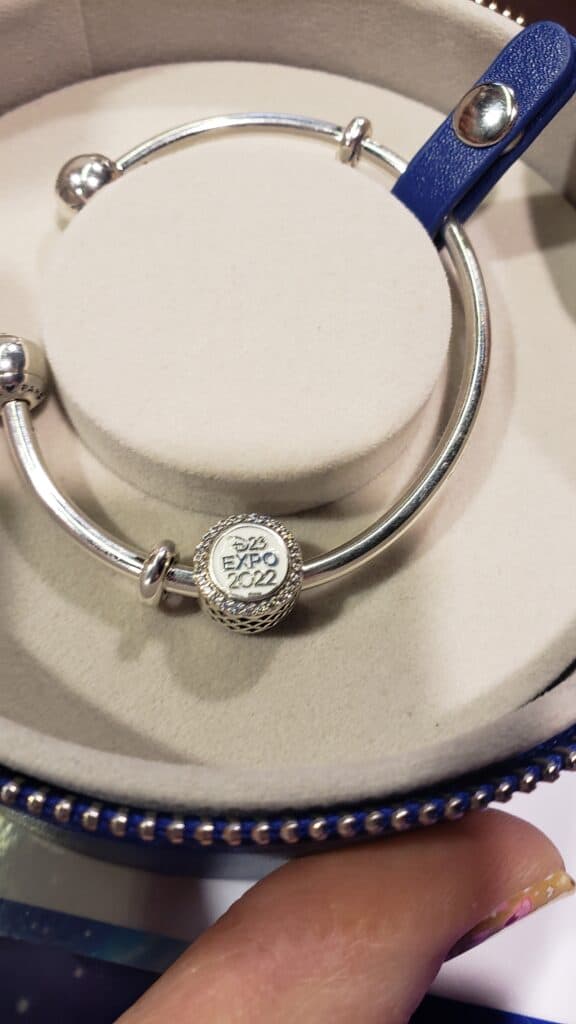 I was told you couldn’t buy the charm on it’s own and then I went up to the second level and the D23 Expo Shop. There, you can buy the charm alone for $85! Now, you can also get the set but they don’t have the jewelry box. That is exclusive to the Pandora exhibit.