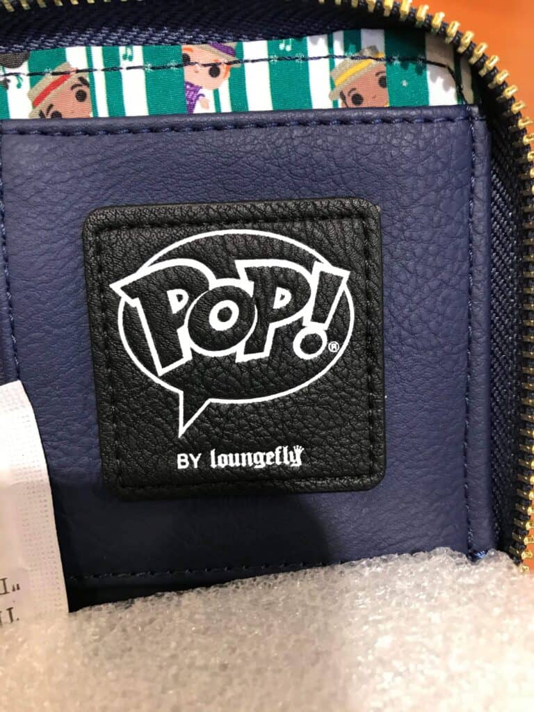 Let’s start with The Dapper Dans wallet that I spotted today at World of Disney and the Co-Op in Disney Springs. It retails for $50 and the all-over print features the barbershop quartet and Main Street icons like the Penny Arcade, the Trolley, the Barbershop, and, of course, the Castle. The lining, in typical Loungefly fashion, is fabulous as well and features the singers, stripes, and music notes.