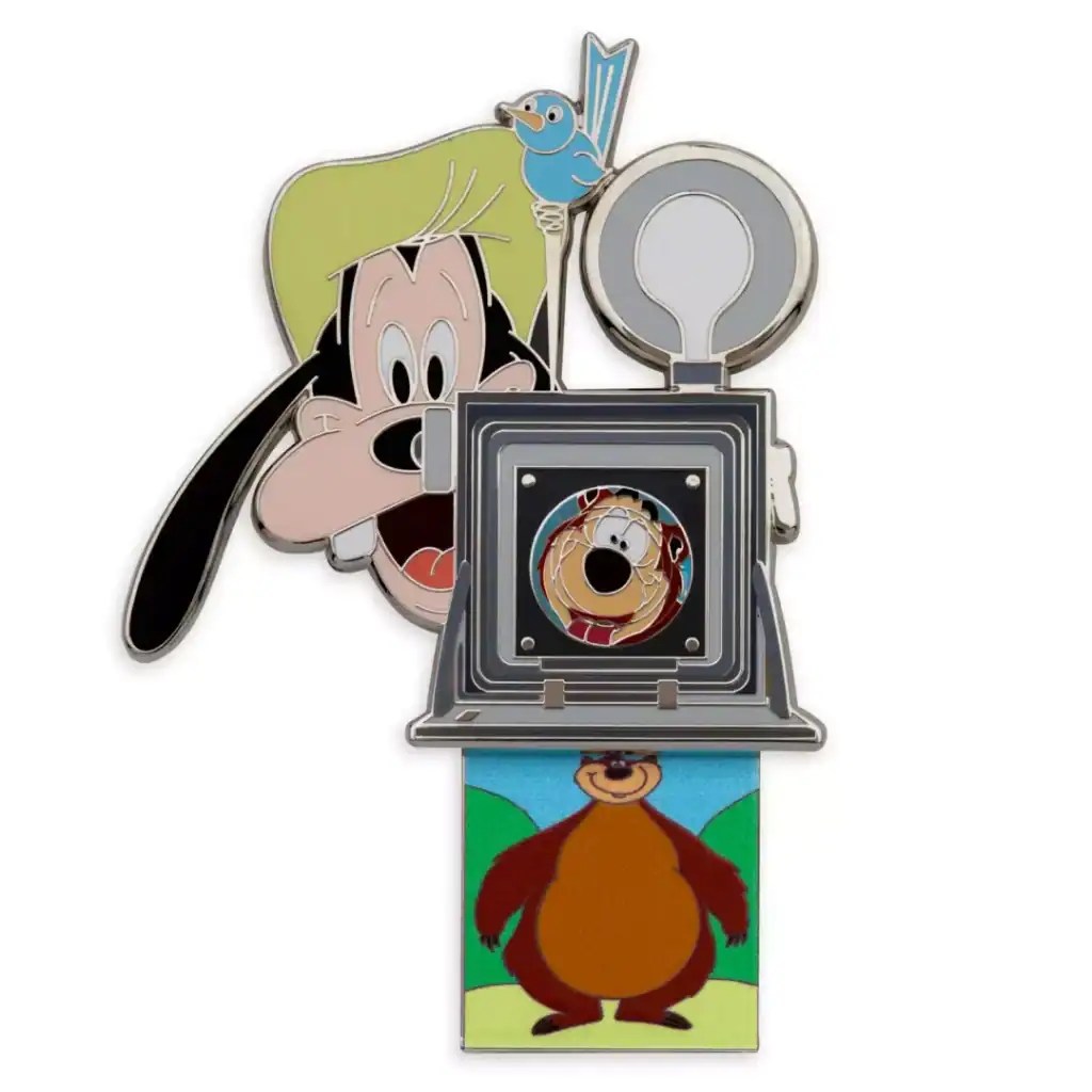 Pin collectors will need this Limited Release Goofy and Humphrey Bear Pin! In honor of the Goofy short, “Hold That Pose,” you can spot Goofy taking a picture of Humphrey Bear, Brownstone National Park’s most troublesome bear! The slide and swivel feature lets two different “photos” slide down!