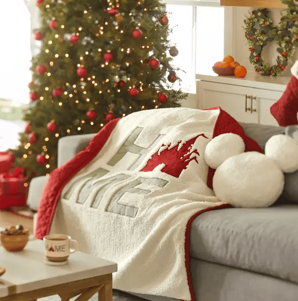 Get that living room ready for company (and comfy cozy nights by the tv or fire)! There is super soft blanket, Mickey shaped pillow and even a treeskirt! You can literally carry the homestead theme from the kitchen into the living room!