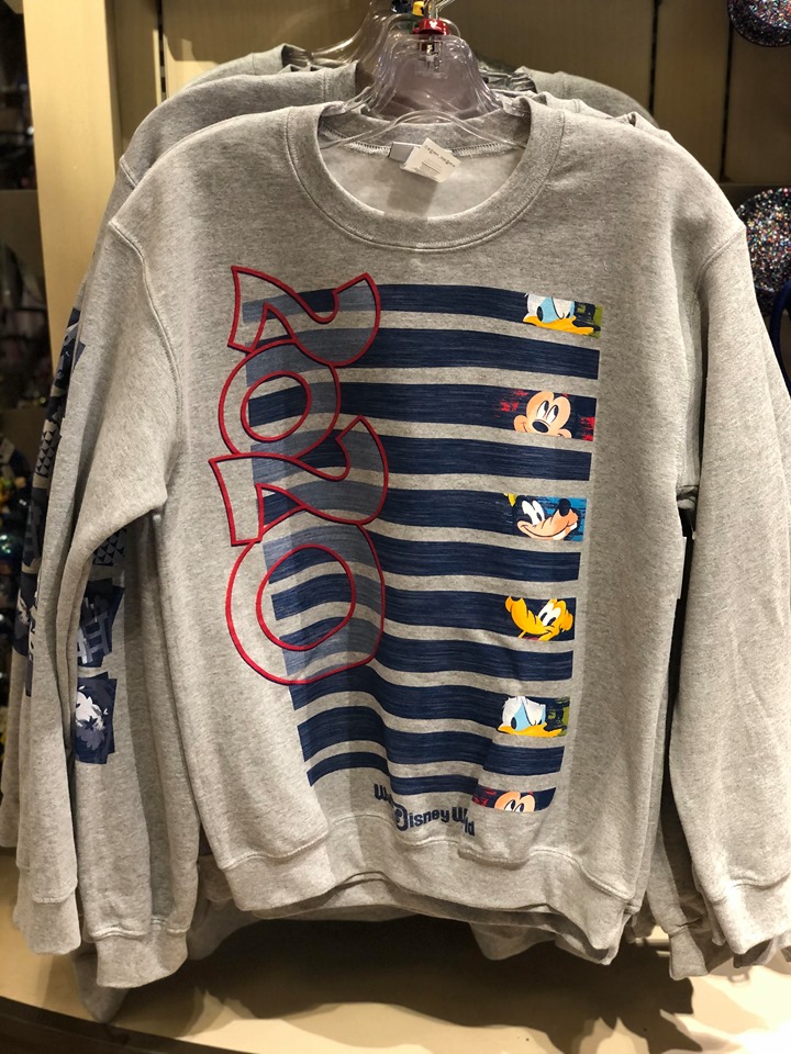 Other bright apparel selections include sweatshirts and long-sleeved tees. Mickey and the gang are featured alongside the funk and funky “2020”, and the park icons are also included on some items.