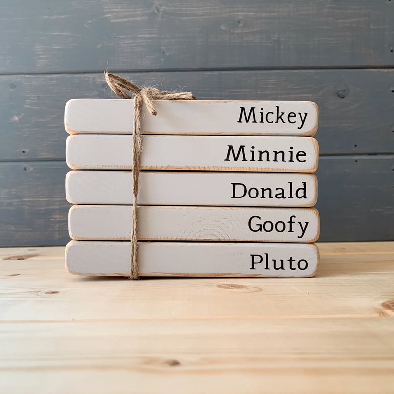 Now, you may have already noticed that these aren’t actually books. However, the stacked wooden pieces are right on trend with the farmhouse style look and will add that touch of rustic charm to any space. Each stack is 5.5″x3.5″x.75″ and is made from wood, paint, Urethane seal, and twine.