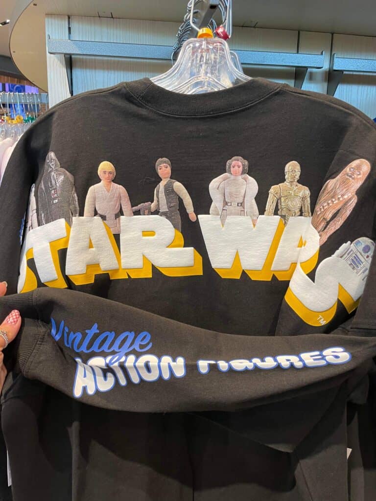 I know I’m really late to the game but I just recently started watching the Star Wars movies. Star Tours in Hollywood Studios has always been one of my favorite rides and I love Galaxy’s Edge so I figured it was time! So far, I have watched the first two films of the original trilogy and I have to say that I’m a fan! I‘m going to need some merchandise to go along with my newfound fandom and the new Star Wars Action Figure Spirit Jersey might be my first purchase! It’s available in the Parks and on ShopDisney HERE.