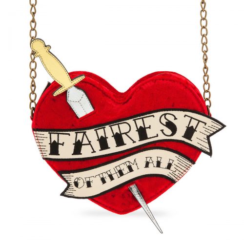 This Snow White inspired look is a Disneybounder’s dream! The shirt has a lovely Peter Pan collar with the poison apple! It’s an adorable detail perfect for this time of year. This was clearly planned. The purse has that tattoo vibe that has been ever so popular and it’s a nice contrast to the innocence of the shirt. This look is also a great price point at $40 for the shirt and $30 for the purse.