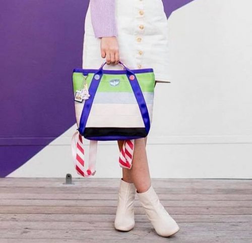 We already checked out the gorgeous Green Alien repeating pattern print, but wow it’s even more amazing when you see it on the bags! This print will be available as a large tote, a crossbody, a wallet, and even a key fob!