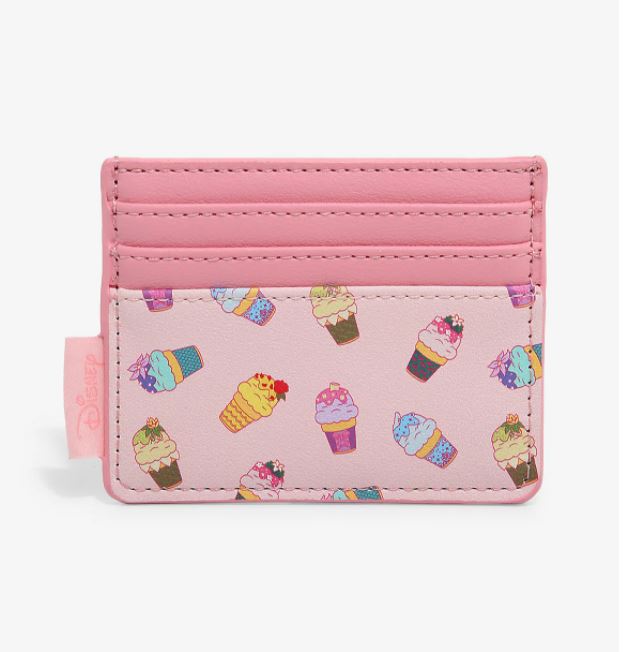 If you like your wallet to match your bag, the Loungefly Disney Princess Ice Cream Cardholder coordinates with the mini backpack perfectly! It has the same ice cream cone toss pattern and has six slots for cards as well as a center pocket. The cardholder retails for $14.90.