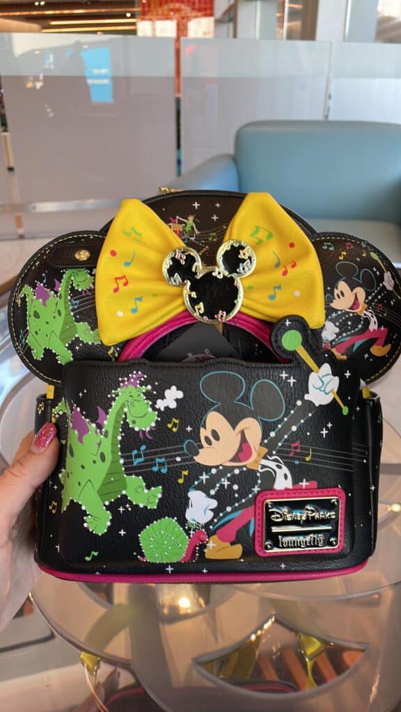 If you saw our post about the Ears yesterday then you know that the details glow in the dark on both the Ears and the mini backpack! That’s just one of the incredible details. There is the Mickey detail on the back with the music notes! There is the 50 years lining inside the bag! Stunning details that a true fan of the parade will not want to miss out on!
