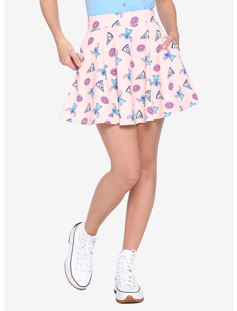 Finally, who doesn’t love a good skater skirt?! This Stitch Pizza & Donuts Zipper Scuba Skirt is an easy way to look fabulous without a whole lot of effort! Stitch happily eats pizza while pizza and donuts float around in the background. The best part about this skirt is that it has pockets! Skirts with pockets are few and far between, so whenever I find one, I have to get it. Add on that this skirt is cute and there is no way that it is not going right into my shopping cart.