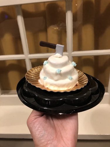Party food is something I get excited about every year! There were a few new offerings this year, and I chose to try the Jack and Sally push pops, the frozen apple cider, and the Constance’s For Better or Worse Wedding Cake. The Sally push pop is gluten free–yay!! The wedding cake was probably the most sought-after dessert of the whole night. It was offered exclusively at a popcorn cart in Liberty Square which also carried one of the four Haunted Mansion ghost treat holders. Since both in-demand items were at one small cart, the lines consistently stayed long. I’m hoping Disney starts offering them at multiple places for future parties. The Mickey o’Lantern popcorn bucket also drew large crowds, and you can see why–it’s adorable! It is available at the popcorn stand between the castle and Tomorrowland.