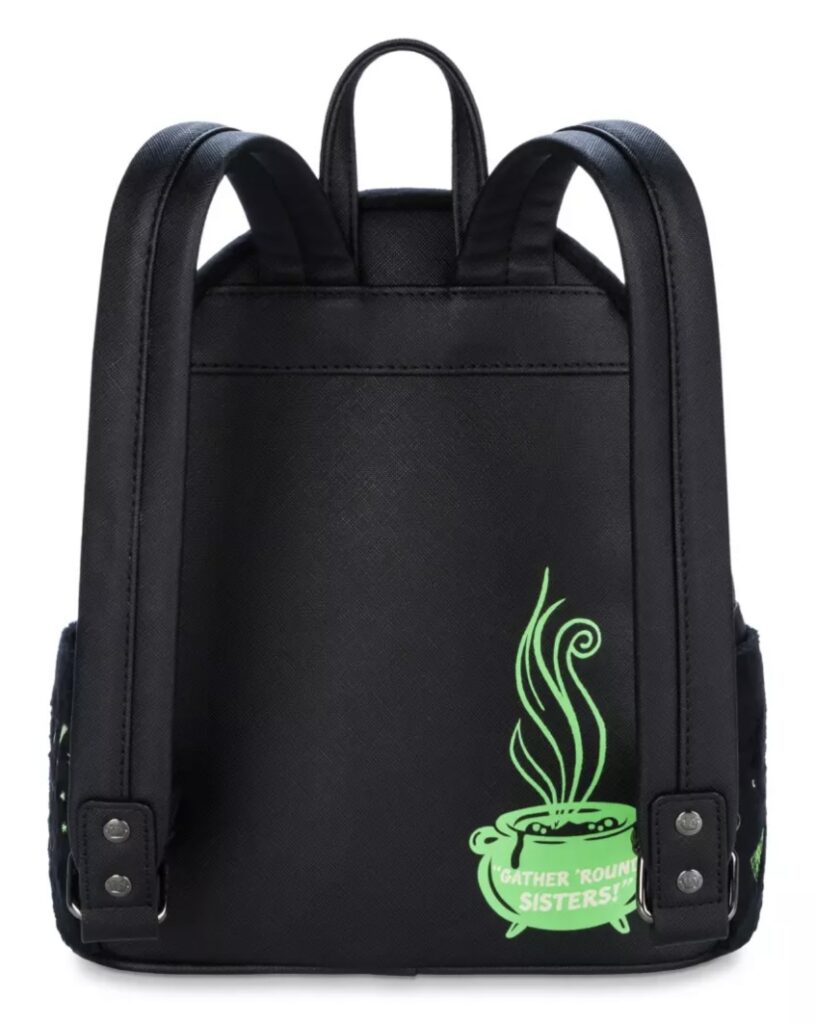 What is a Disney collection without a purse? It’s sad, that’s what it would be! And this Loungefly is perfect for your Happy Hauntings! Thackery Binx is found on the exterior covering the front pocket. Above the black feline find a cartoonish drawing of the siblings. All the colored accents on the bag glow in the dark, making them perfect for all your Happy Haunting.