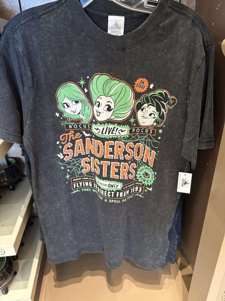 Una increíble colección con el tema de las hermanas Sanderson ha llegado a los parques. Entre tonos verdes y naranjas y un diseño de estilo caricatura tenemos camisetas, sudaderas, vestidos, orejas, Spirit Jerseys, mochilas de Loungefly, artículos para el hogar, café de Joffrey’s e incluso barras de chocolate.