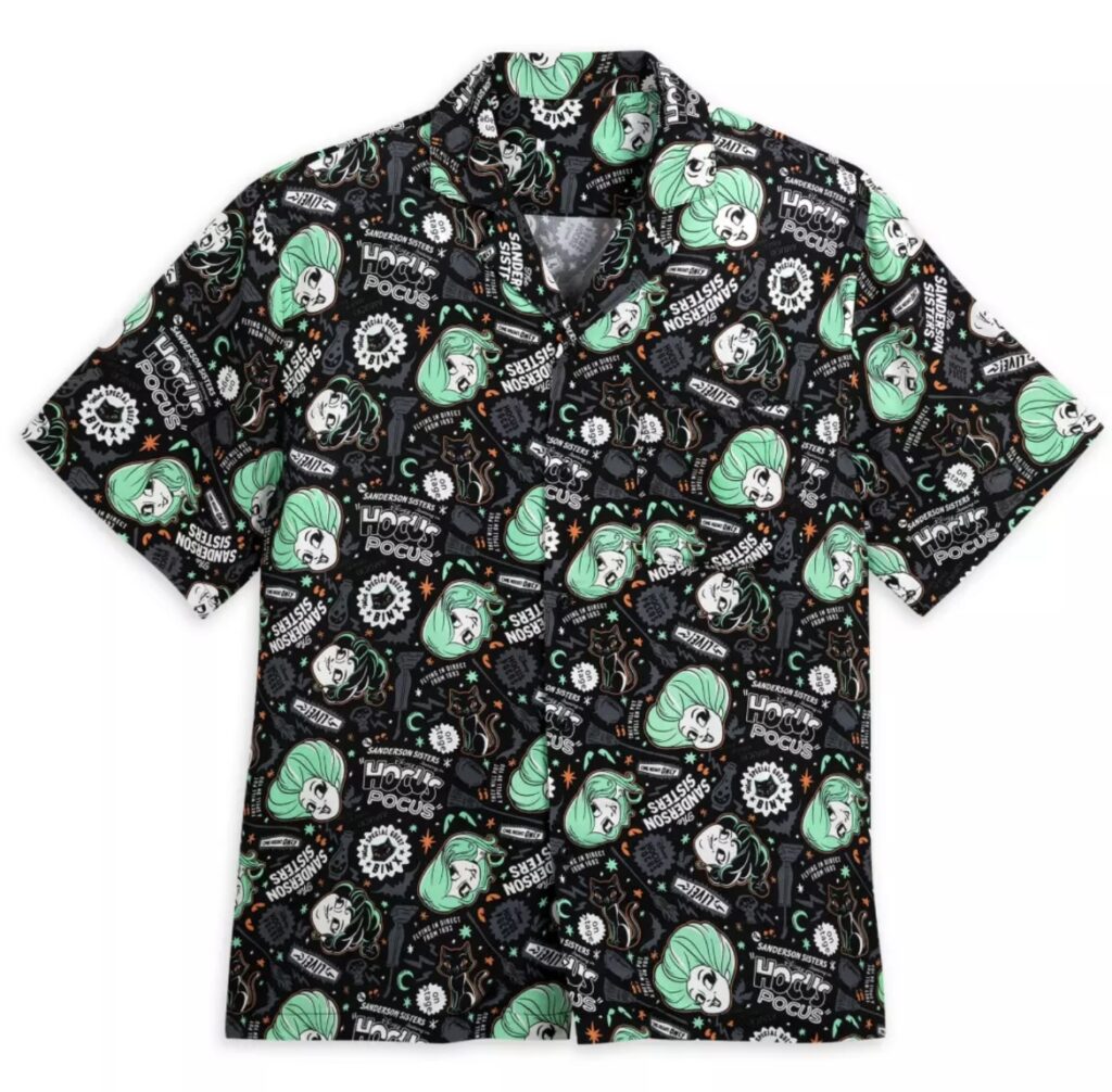 First, Dress Shoppe Fans can cackle with glee. We warned you this dress was coming and here it is. The dress features a solid tank bodice with a full skirt. But the best part of the ensemble is the fun sheer cape! Edna Mode would not approve, but I’m here for it! Make sure you and your boo coordinate with the matching button-down camp shirt. Complete your Sanderson Sisters styling with a pair of ears!