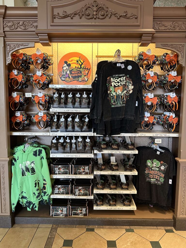 Una increíble colección con el tema de las hermanas Sanderson ha llegado a los parques. Entre tonos verdes y naranjas y un diseño de estilo caricatura tenemos camisetas, sudaderas, vestidos, orejas, Spirit Jerseys, mochilas de Loungefly, artículos para el hogar, café de Joffrey’s e incluso barras de chocolate.