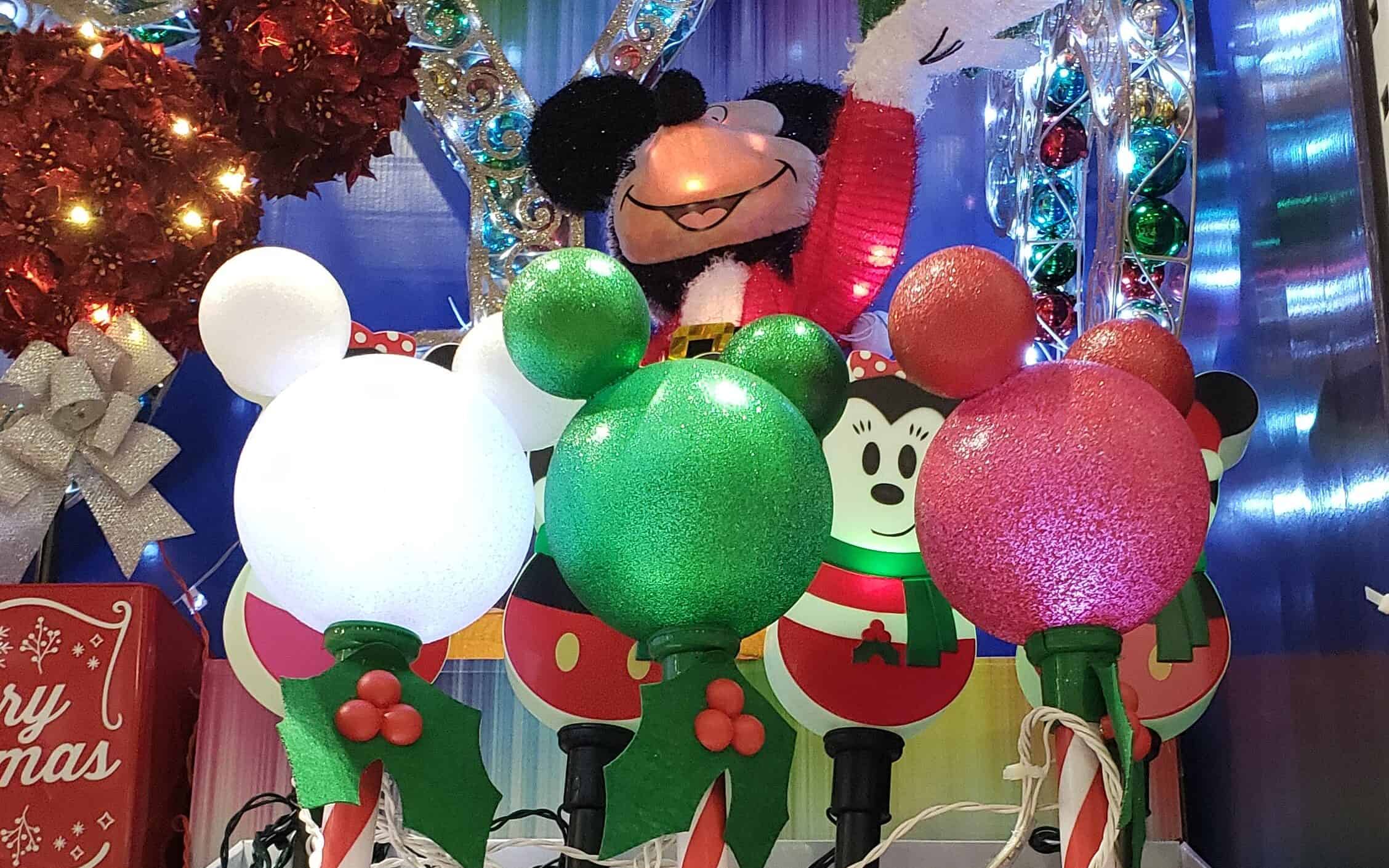 There are also fabulous light-up yard sculptures like Mickey and Minnie kissing under the mistletoe, Mickey and Minnie in a sleigh, Santa Mickey with a present, JOY with a Mickey icon as the “o”, and even Winnie the Pooh!