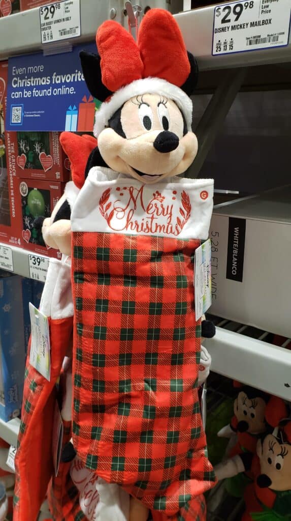 There are even precious decor options for inside the home like this letters to Santa mailbox, this Mickey stocking, two sets of Mickey and Minnie figures, and even a plush Minnie snowman!