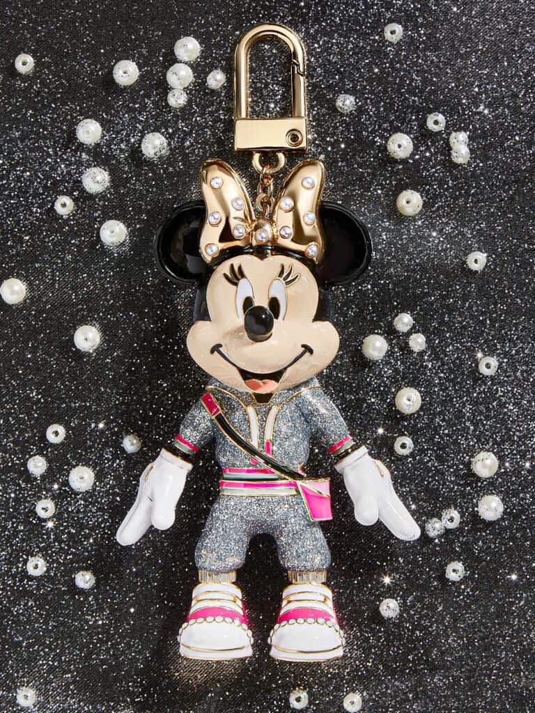 Get ready for a workout with the Athleisure Bag Charm. It features Minnie wearing a matching glittery sweatsuit with pink and gold details, a gold and pearl bow, a pink and gold crossbody bag, and pink and white sneakers!