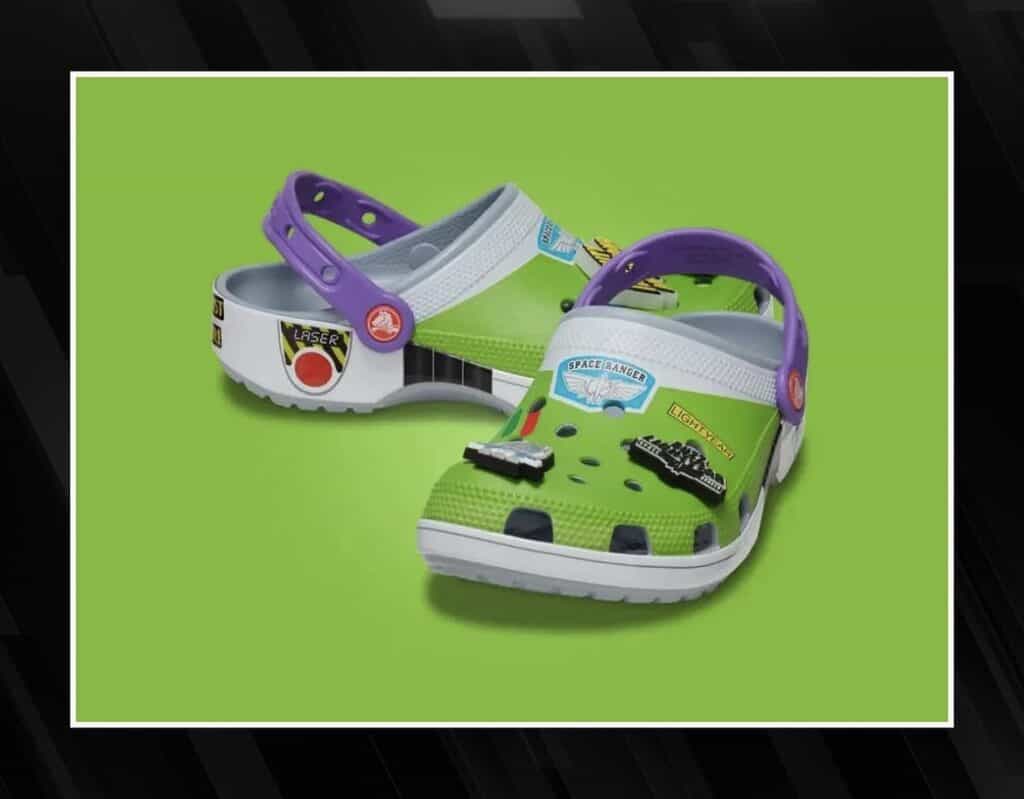 Let your kicks take you to Infinity and Beyond with Buzz Lightyear Crocs. The iconic green, purple and white colors make a bold statement. Caution stripes and booster buttons are detailed along the sides and heels. Buzz’s Star Command logo sits at the top of the shoes.