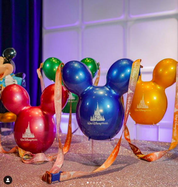 First up are these amazing Mickey Balloon Popcorn Buckets! There is a red option, a green option, a blue option, and a yellow option! All of them are shimmery and have an EARidescent strap with the Walt Disney World and Castle 50 logo on it! On the main balloon body, you can also spot the 50th Castle Walt Disney World Logo!