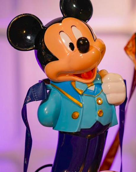 As much as I love the balloons, I think these Mickey and Minnie pieces take the cake! We first thought they were both popcorn buckets, but as it turns out, Minnie is actually a sipper! Either way, they are adorable and would look great on my shelf! They are so cute dressed in their EARidescent best! They have on their adorable celebration costumes with gold details, and both sippers have a 50th Anniversary strap!