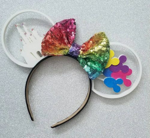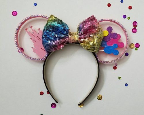 These ears have everything I love on them! There are sparkly rhinestones, Cinderella Castle, Mickey Balloons, and a bow! What more could a Disney Fashionista ask for on her birthday? I personally love the pink color of these ears, but they are available in other color choices as well.