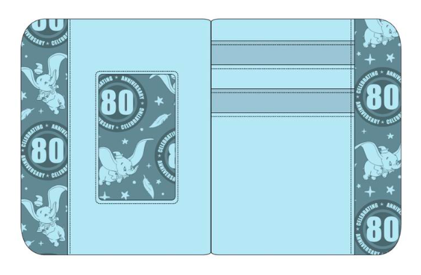 Last, but certainly not least, there is a precious zip wallet! It features the same image of Dumbo and Timothy Q. Mouse as the crossbody and Dumbo’s hat even sticks up from the wallet! The back of the wallet features the circus train! Inside, you will spot the same anniversary lining as the other two pieces.