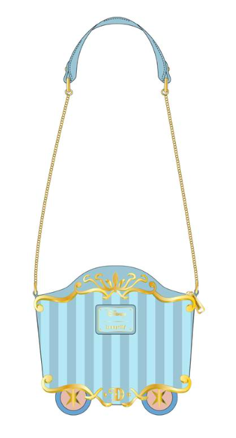 First is this absolutely adorable crossbody featuring Dumbo and Timothy Q. Mouse in a circus wagon! The fabulous blue and gold color palette is gorgeous! Even the striped back is cute with a little gold “D” at the bottom! Inside is the fabulous 80th anniversary Dumbo print lining!