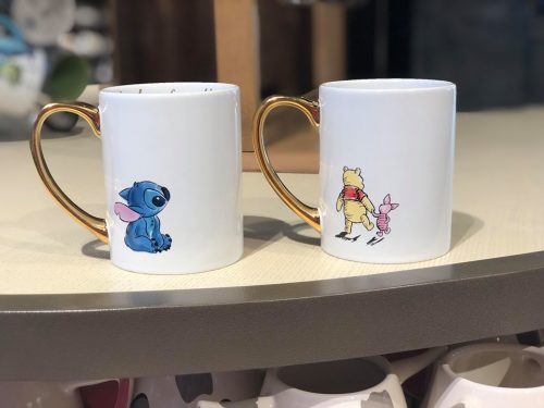 We found two gold handled character mugs, Stitch, and Winnie the Pooh. These have a beautiful watercolor painting design to them as well!
