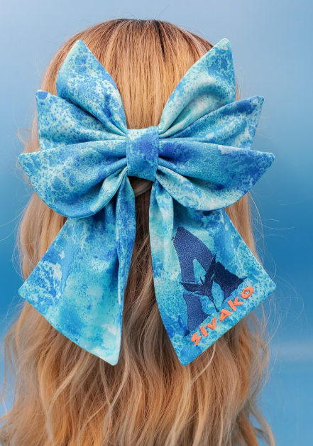 The blue Avatar-inspired bow is a stunning choice for a day spent in Pandora – The World of Avatar. With its rich shades of blue and beautifully embroidered detail, it perfectly captures the bioluminescent feel of the land. This bow pairs especially well with darker outfits or Na’vi-inspired DisneyBounding looks. It adds a bold pop of color that still feels cohesive with Animal Kingdom’s immersive theming.