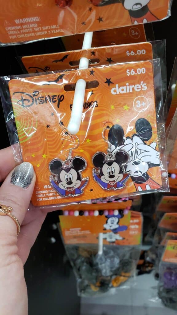 If you want jewelry, there are a ton of options! Earrings include Vampire Mickey, Stitch, Witch Minnie, Jack Skellington, and the Sanderson Sisters, and earring sets include Maleficent and the Evil Queen, Vampire Minnie and Witch Minnie, the Sanderson Sisters and Thackery Binx, and Vampire Mickey!