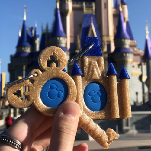 Last, but certainly not least, are these two fabulous new MagicBand Buddies! First up is the fabulous Gold Castle MagicBand Buddy that features a glittery gold castle with glittery blue turrets! There is also the glittery gold Key To The Kingdom MagicBand Buddy that features plenty of magical details! The key has a hidden Mickey at the end along with a Mickey icon body. There are even Castle cut-outs in the Mickey ears!