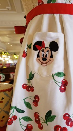 First off I have to point out this amazing apron! I am hosting my first Christmas this year, so I had to purchase my first apron! As I’ve said before, I’m not a cook, so I haven’t ever needed one! This collection is so adorable it almost makes me want to cook more. This apron is perfect for year-round wear and features cherries on a white background. There are even hidden Mickey cherries! There are also two pockets that feature an embroidered Mickey and Minnie!