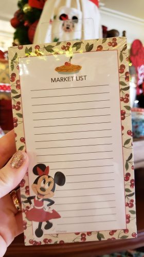 Next are these amazing stationery pieces including a Minnie Mouse market list and Minnie notecards! You could even use these to write down your favorite recipes and place them in this adorable Minnie, Mickey, and cherry patterned recipe box!